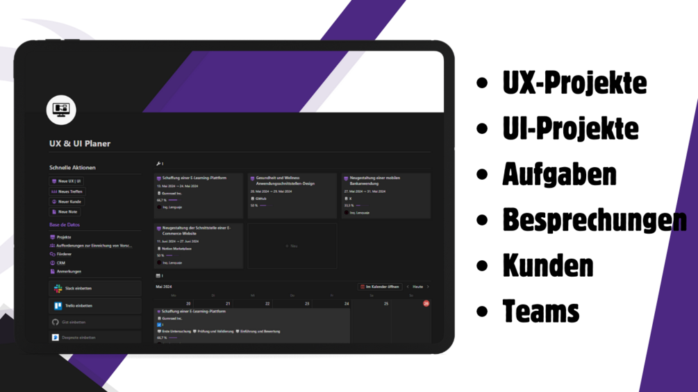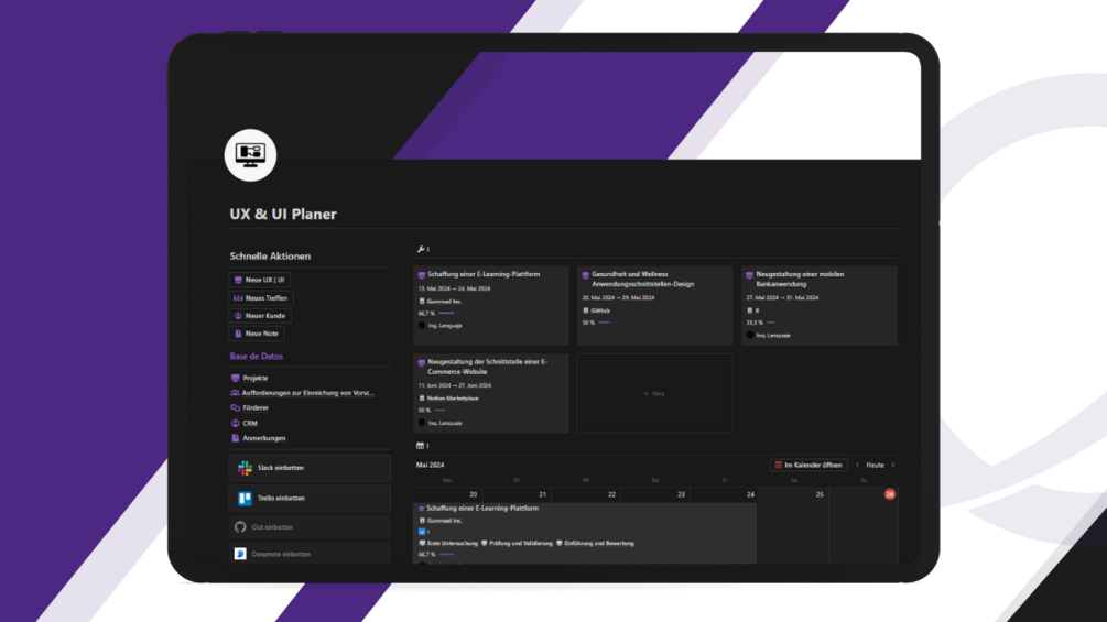 UX-Projekte: Verwalten Sie Ihre User-Experience-Projekte auf detaillierte und organisierte Weise und stellen Sie sicher, dass jede Phase des Designs abgedeckt und auf die Ziele der Nutzer abgestimmt ist.