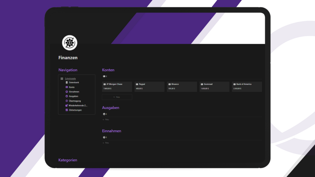 Übernehmen Sie die Kontrolle über Ihre Finanzen mit der Vorlage "Finanzen" von Notion!