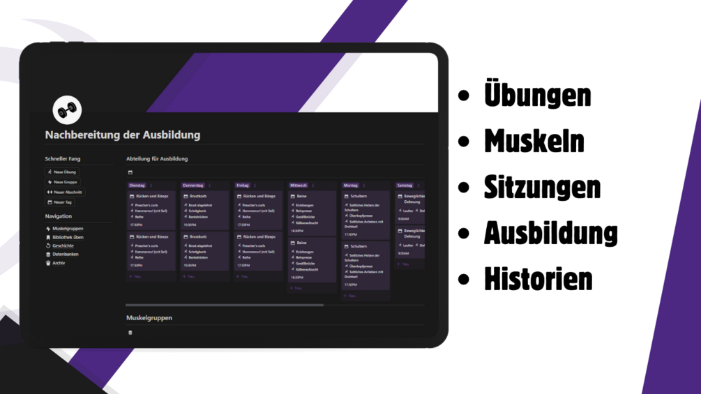 Muskeln: Fokussieren Sie Ihr Training effizient und trainieren Sie jede Muskelgruppe auf ausgewogene und effektive Weise.